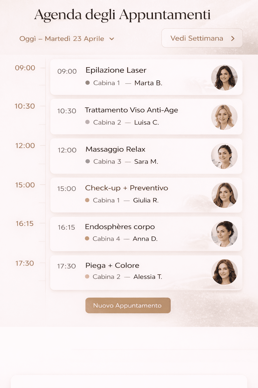 Il sistema che riempie la tua agenda, fa tornare le clienti e ti libera tempo ogni giorno.